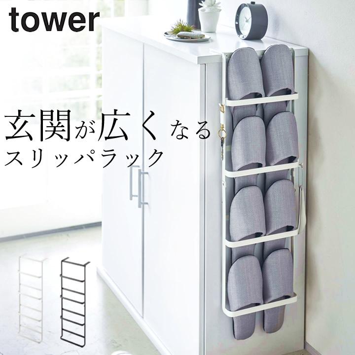 楽天市場 スリッパラック スリム 壁掛け 引っ掛け式 スリッパラック タワー Tower 下駄箱扉 収納 4足 省スペース 固定 フック スリッパ置き コンパクト 山崎実業 Yamazaki ホワイト ブラック 玄関収納 掛ける 扉 シンプル スタイリッシュ スリッパスタンド ルーム